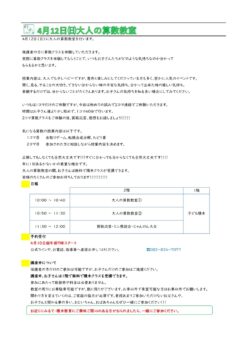 4月12日㈰に大人の算数教室を行います。